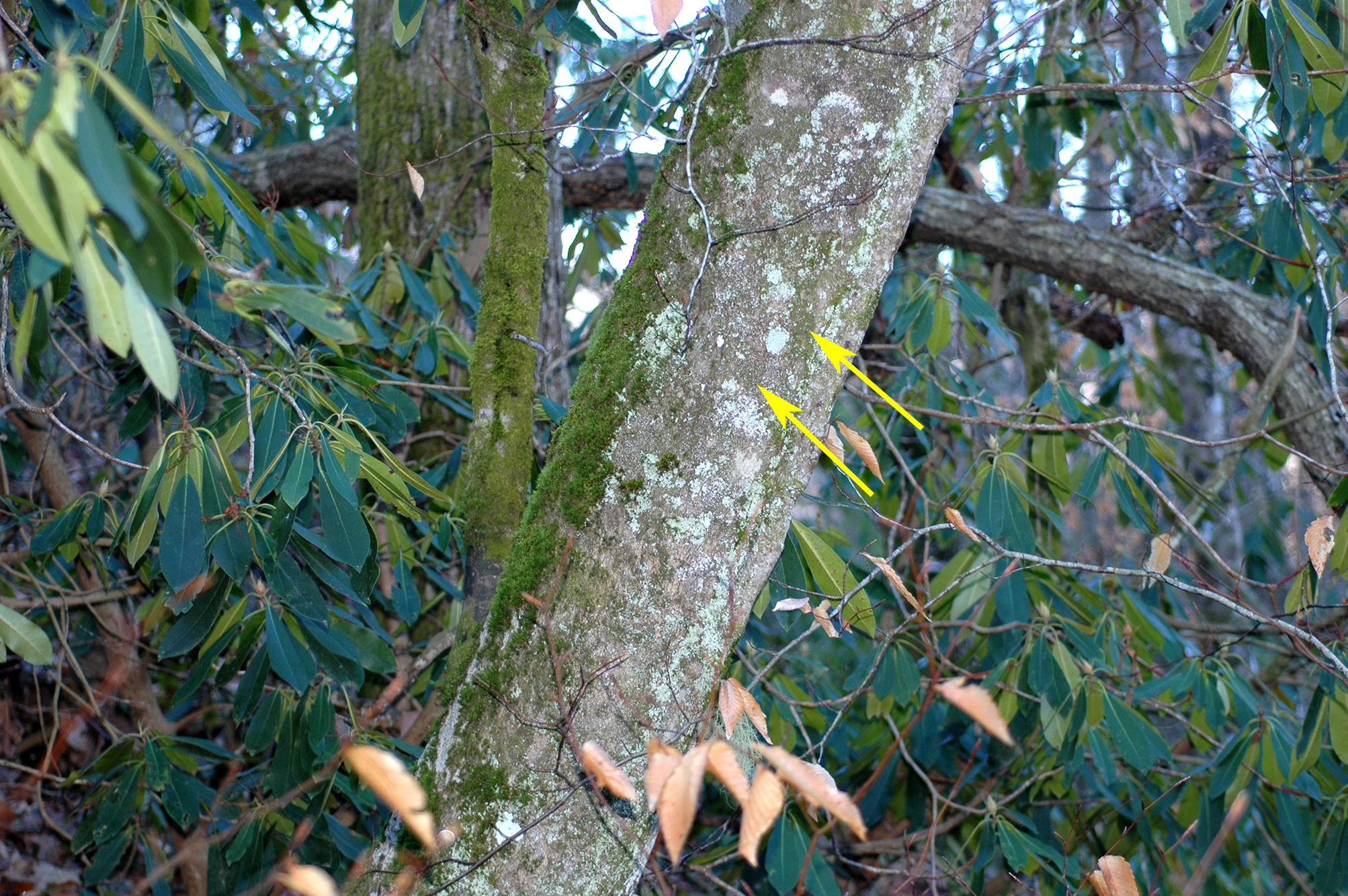 Acidic cove forests, upland mixed hardwood forests, and northern hardwood forests. Often near streams but also far from streams on trees in somewhat dry forests that experience frequent periods of high humidity; moderate to upper elevations (1100 ft. – 5000 ft.).