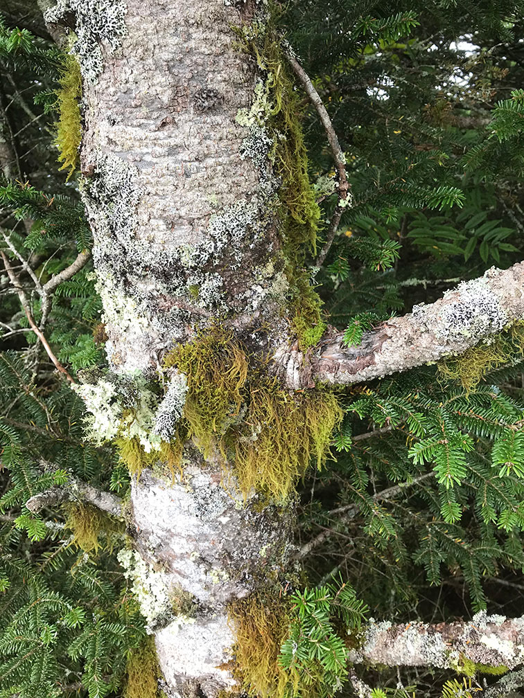 Zander (1980, 1996) put forth the hypothesis that L. viticulosoides in the Southern Appalachians was spreading due to human induced environmental change (acid rain and associated insect infestations) that has led to the death of Fraser fir trees thereby producing a greater “availability of suitable, loose bark substrate.” Based on our observations, in the last 20 years L. viticulosoides has greatly increased in abundance and in luxuriance on Clingmans Dome. Its presence on Roan Mountain is far less noticeable with only small tufts seen on 1-3 fir trees from 1999-2018. Historically the species could not be found on Roan Mountain by Lewis Anderson who made a decided effort to find it there (Anderson 1951). To our knowledge, L. viticulosoides has yet to be found in the Fraser fir forests on Mt. Mitchell, N.C. or Mt. Rogers, Virginia.