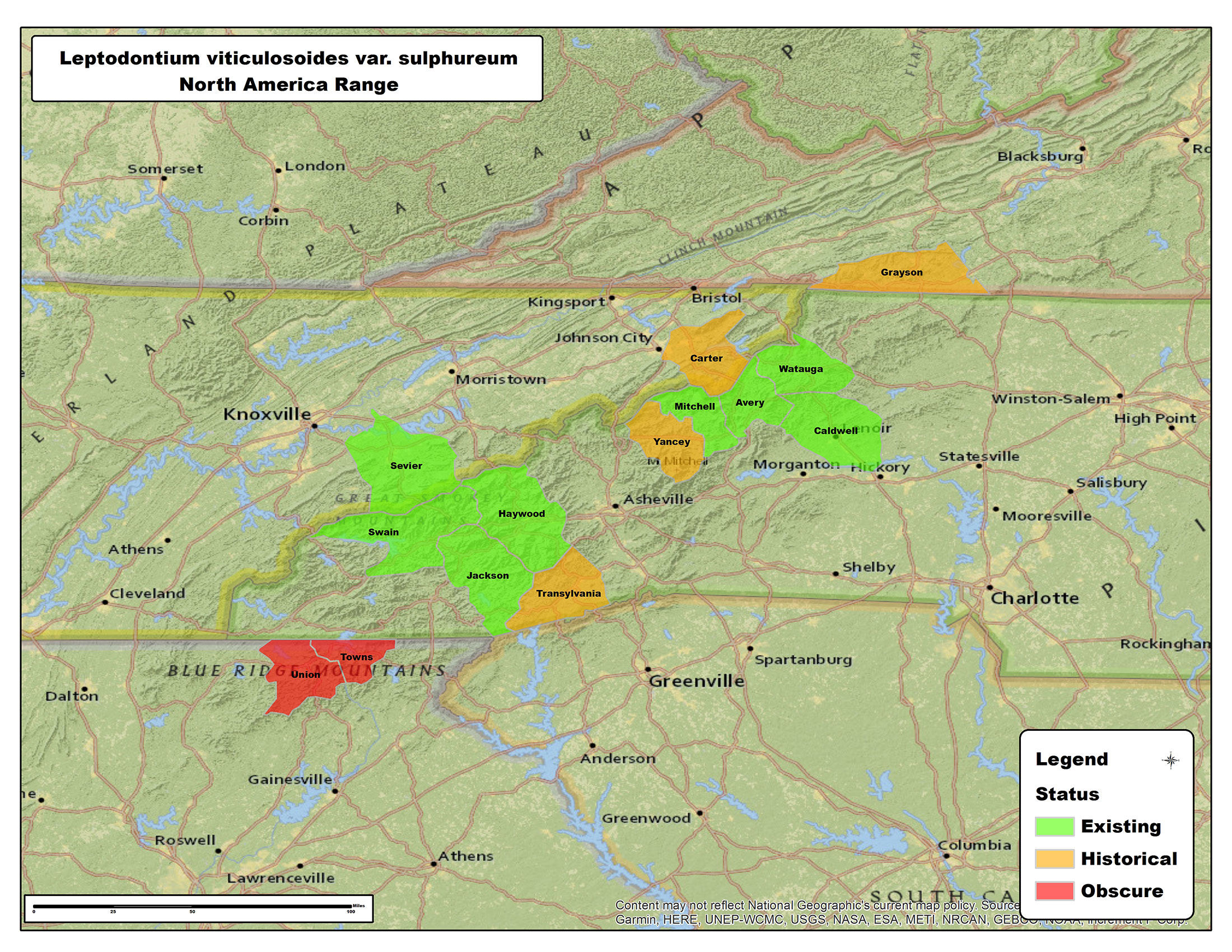 The NatureServe Conservation Status applies to Leptodontium excelsum, presumably as a narrow endemic restricted to the Southern Appalachians.
