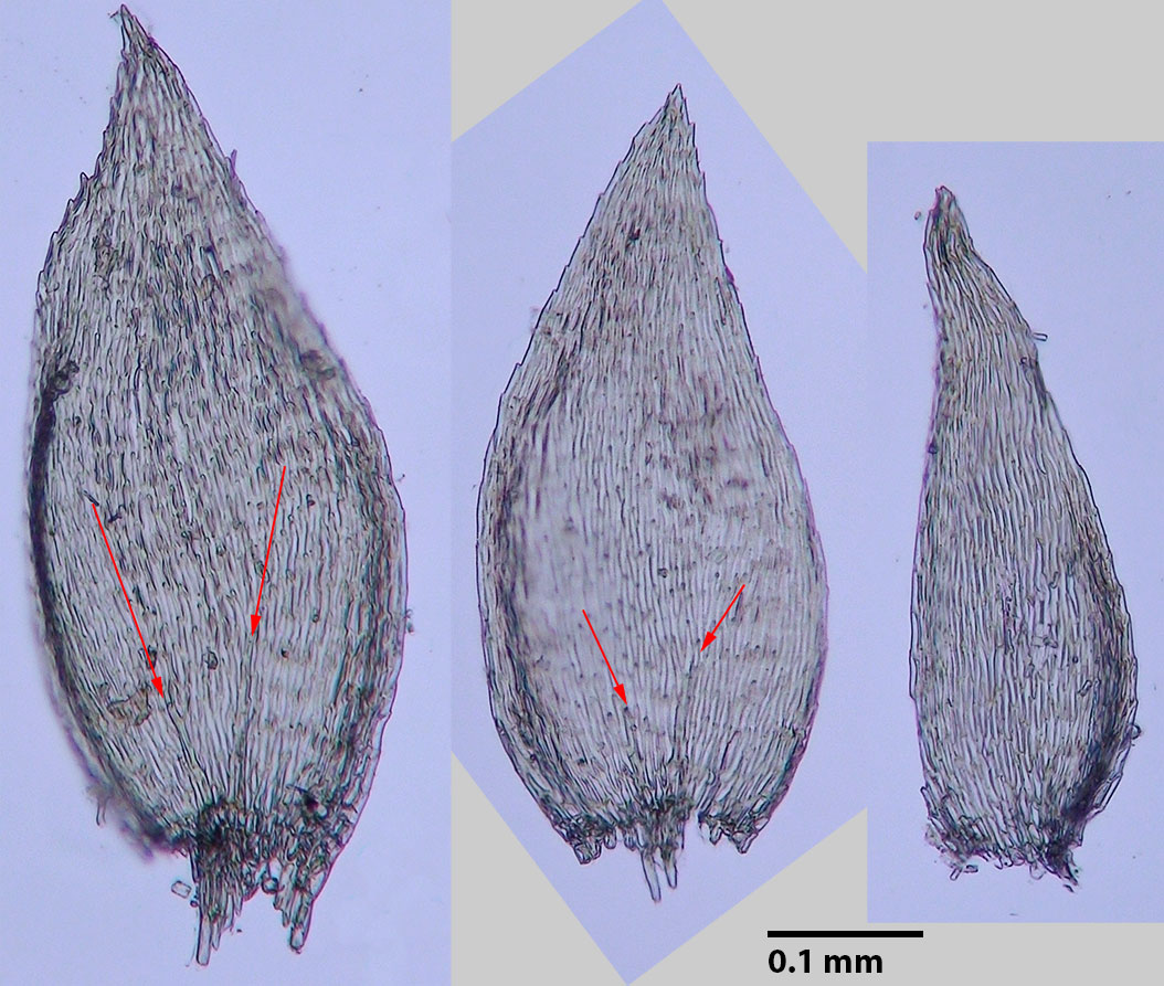 A suite of characters should be confirmed when identifying Leptohymenium sharpii. None of the characters by themselves is diagnostic as many other mosses have them.
