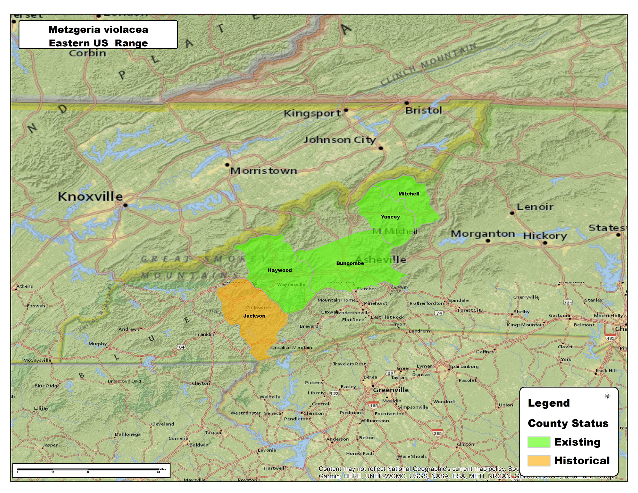 M. violacea . . . costa of attenuate branches with 3-6 rows of epidermal cells [3-4 rows in the Southern Appalachians]; gemmae developing on costa and laminae; dry thalli gradually becoming blue