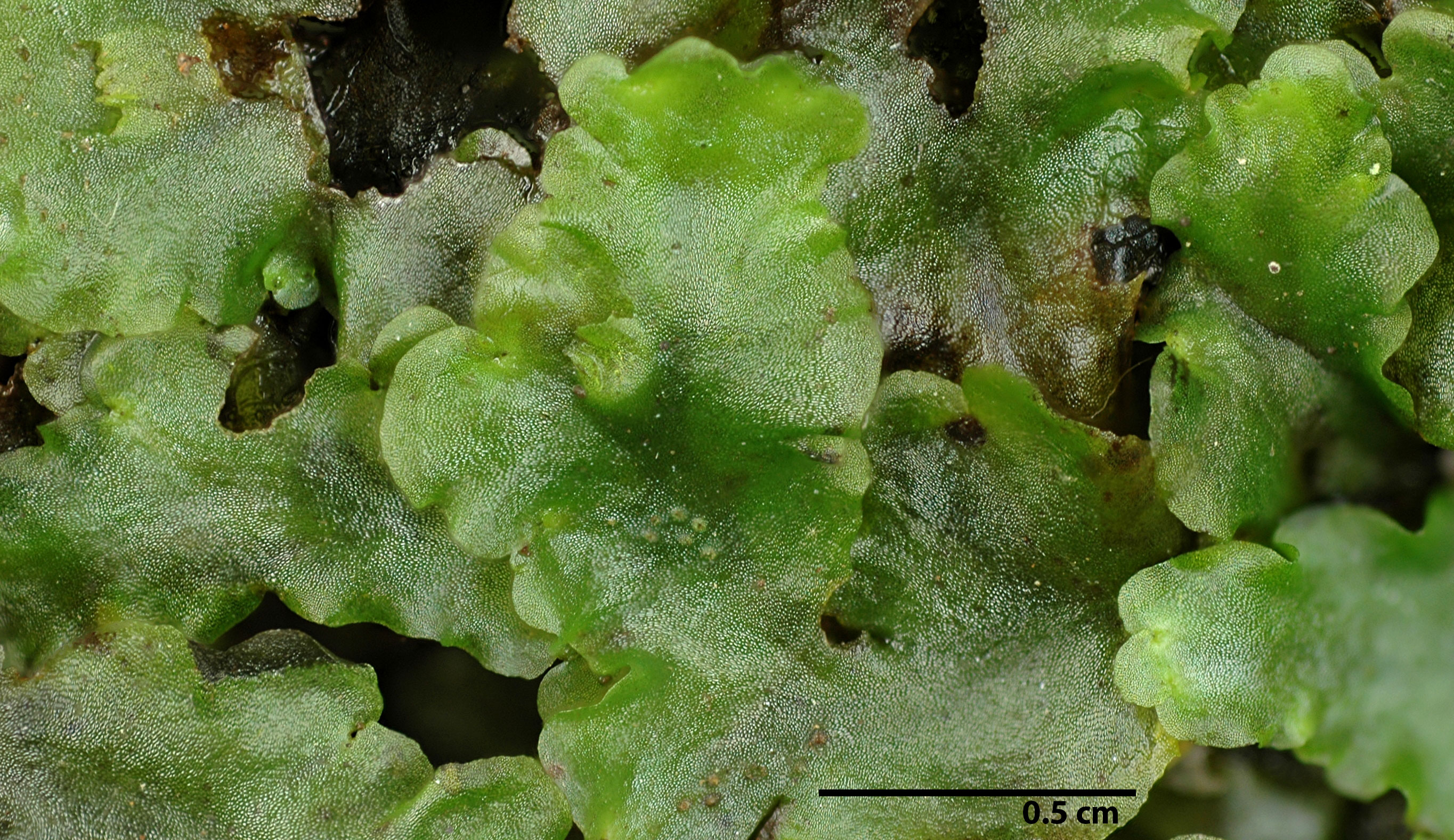 Superficially similar to small forms of Pellia, B. pusilla lacks oil bodies [ca. 15-35 oil bodies in cells of Pellia], is more regularly lobate along the thallus margins, produces dorsal, stellate gemmae, and a number of other distinctions making Blasia a very different plant.