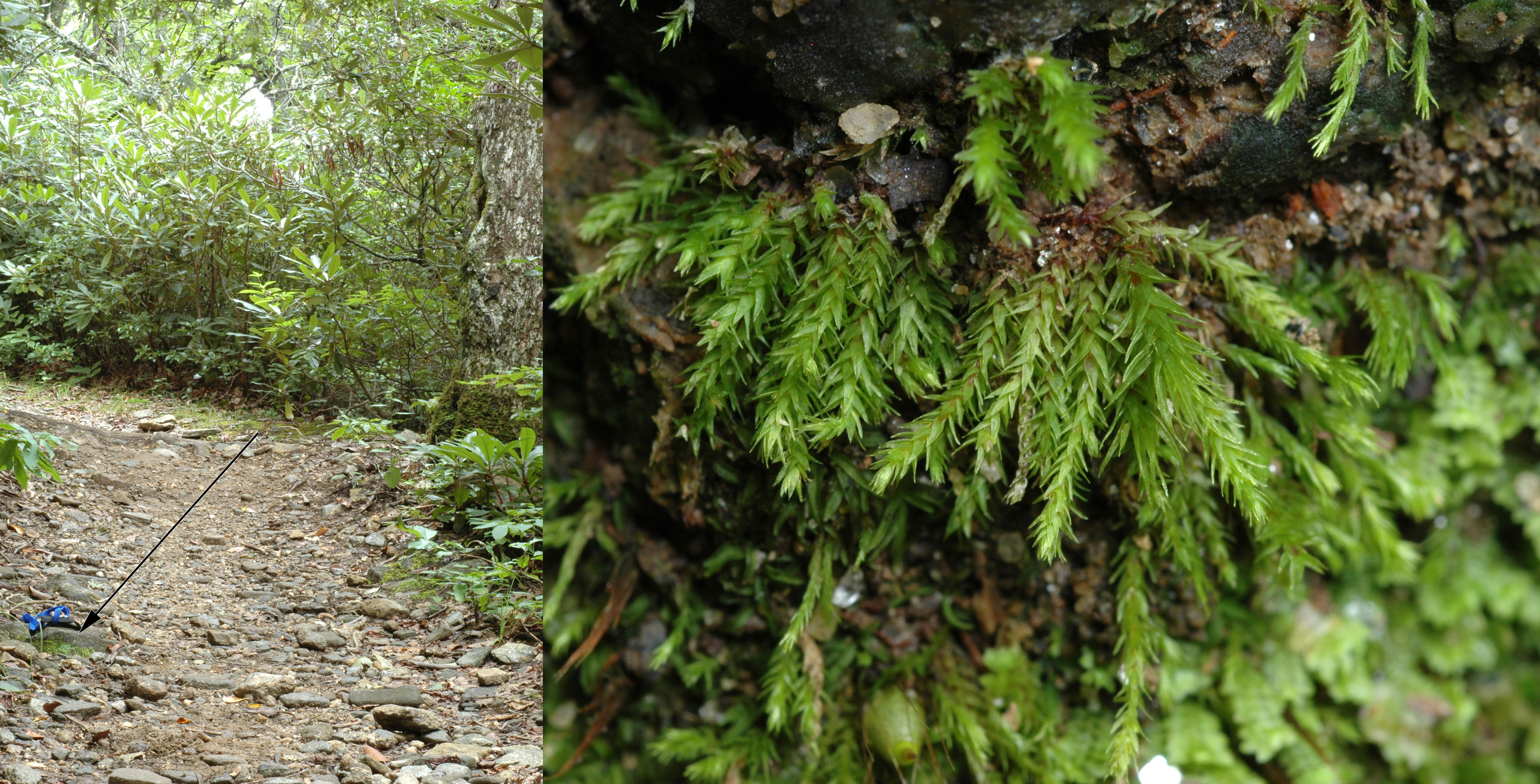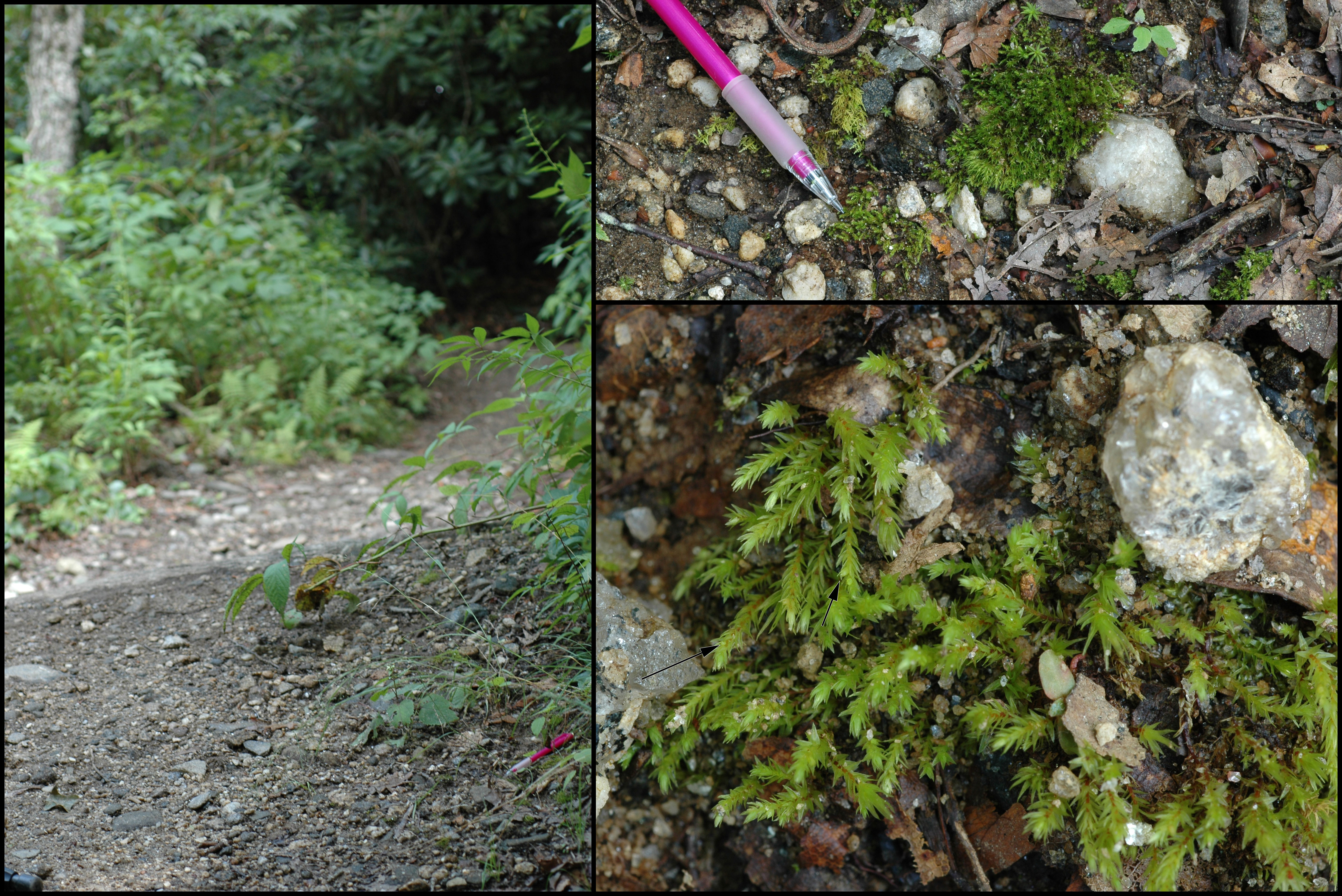 Northern hardwood forests dominated by Quercus rubra, scattered Picea rubens present at the North Carolina site. North facing slopes, on exposed mineral soil along trails; high elevations (4200 – 4900 ft) (Shaw 2014; Shevock and Shaw 2005).