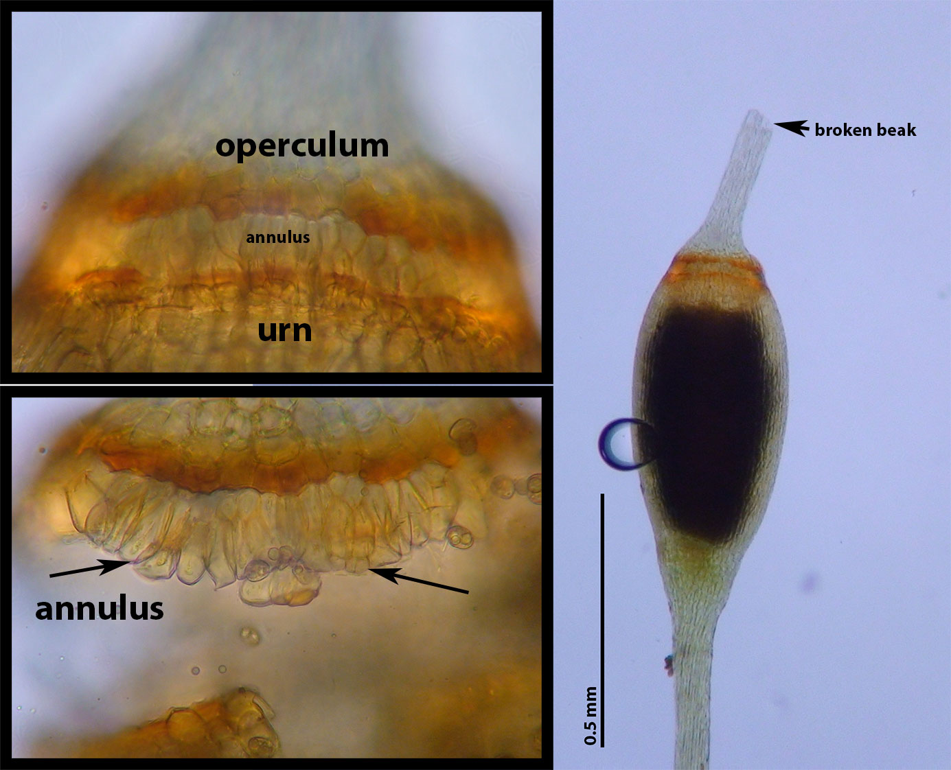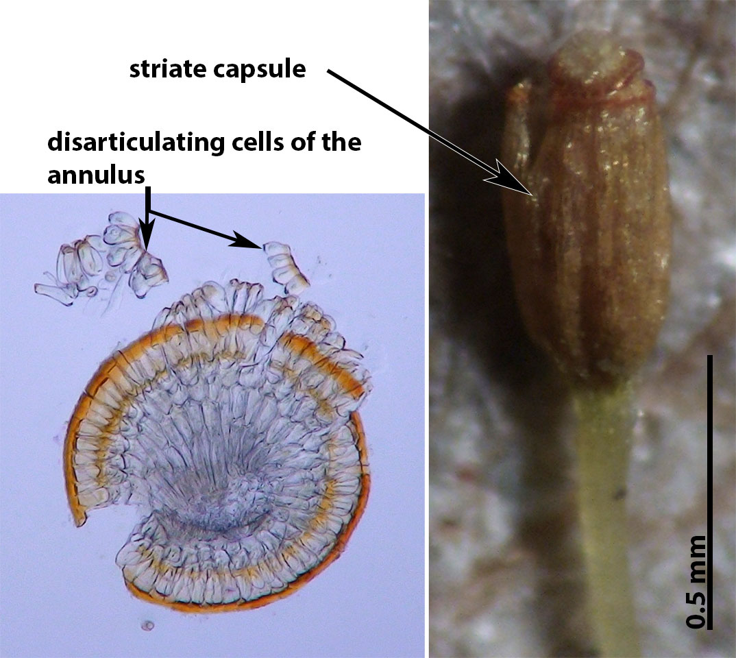 Monoicous. Capsule with beaked operculum separating from the urn by means of a well differentiated annulus. Calyptra mitrate. Mature capsules when dry striate (with longitudinal ridges), with 16 short peristome teeth, teeth papillose.