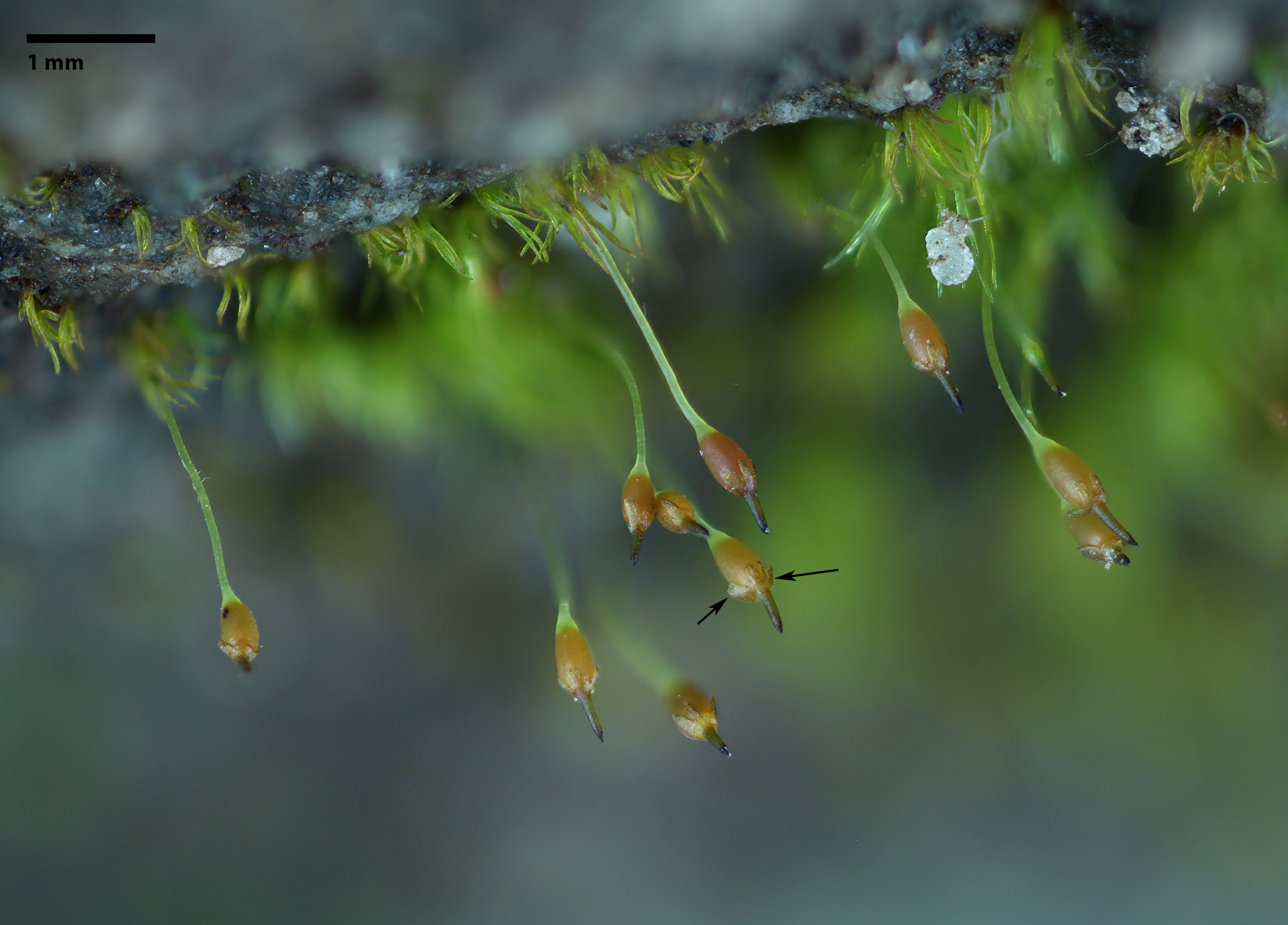 Very small, 1-2 mm tall, to 5 mm tall including the sporophyte; gregarious acrocarp.
