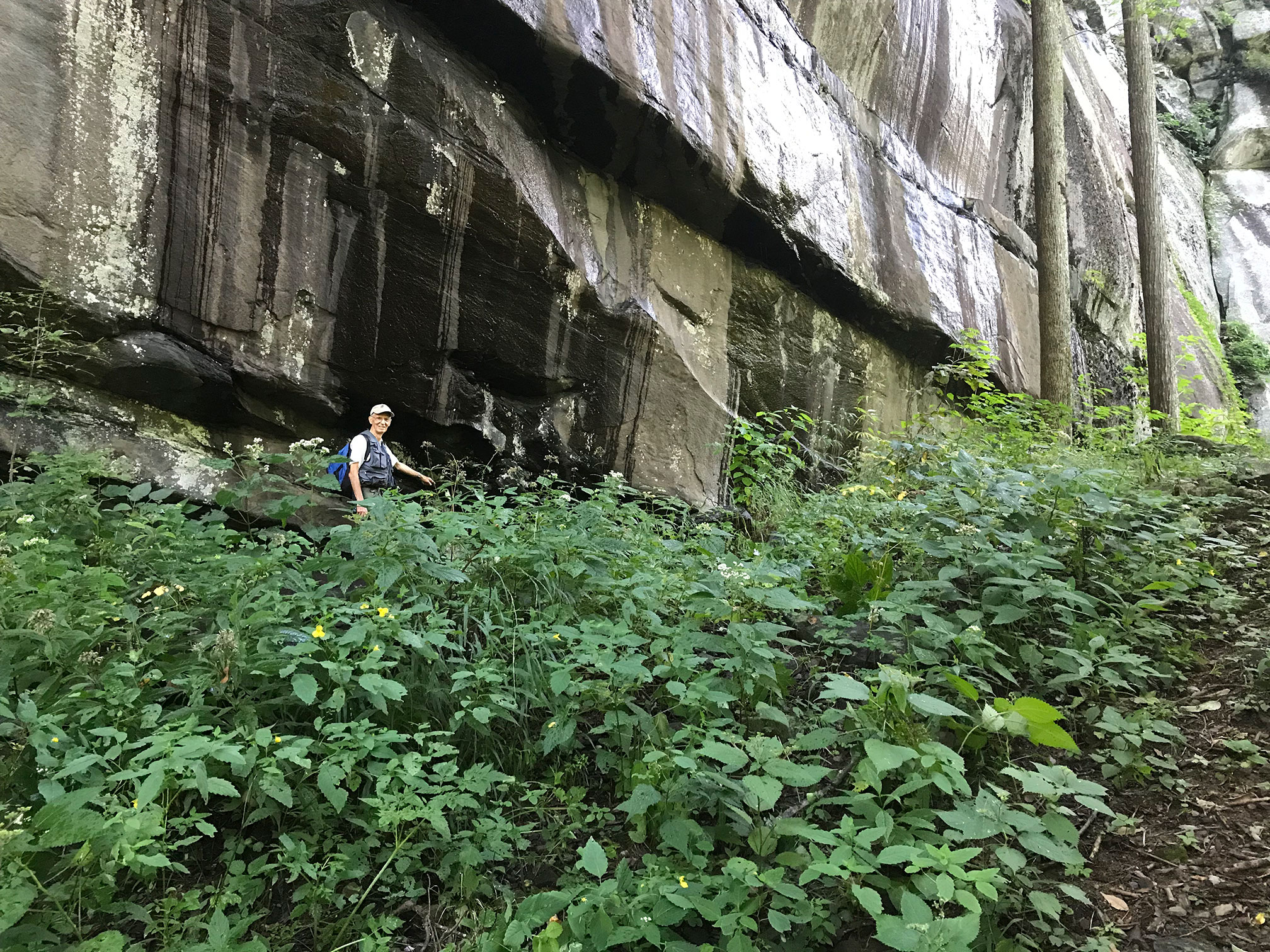 Dan Pittillo points in the general direction of a single rock found with L. sharpii.