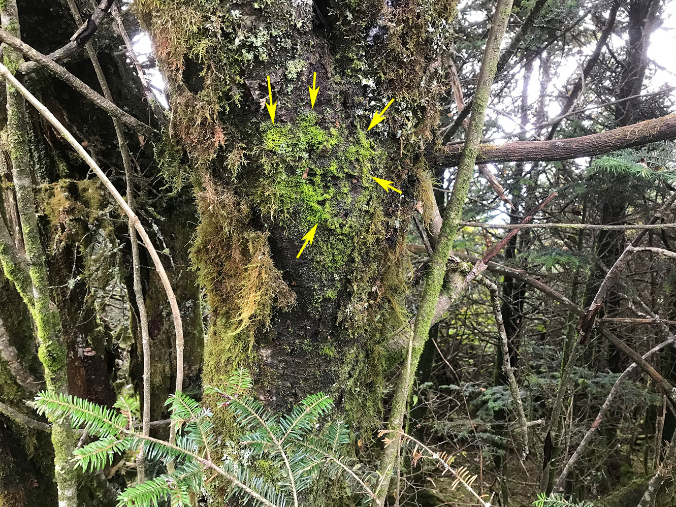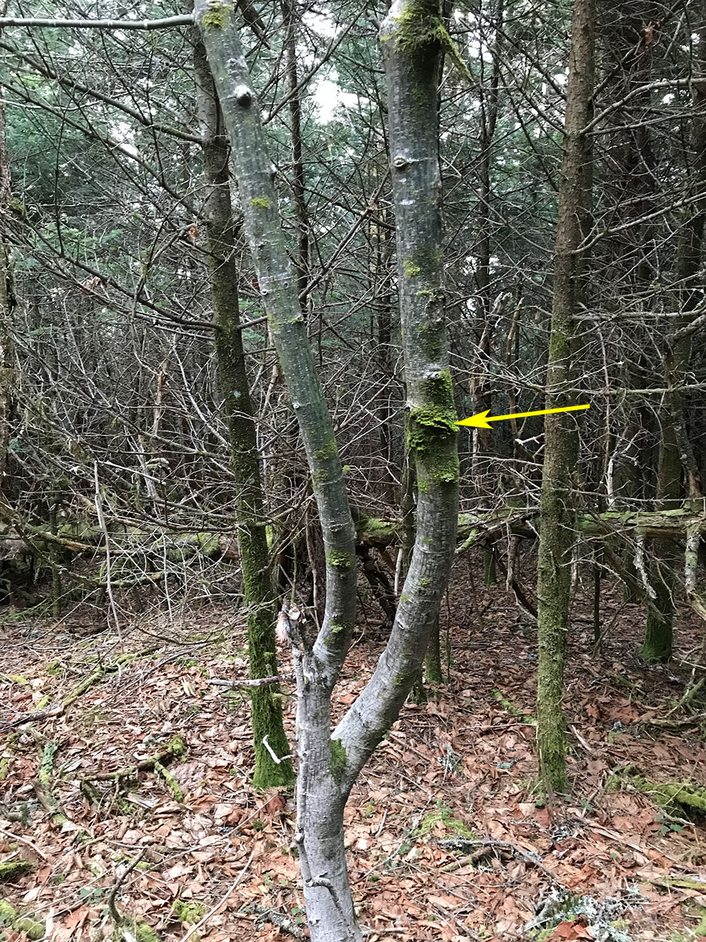 A nice mat on trunk of striped maple on Roan Mtn.