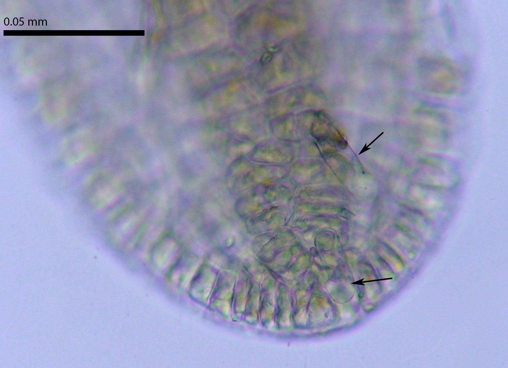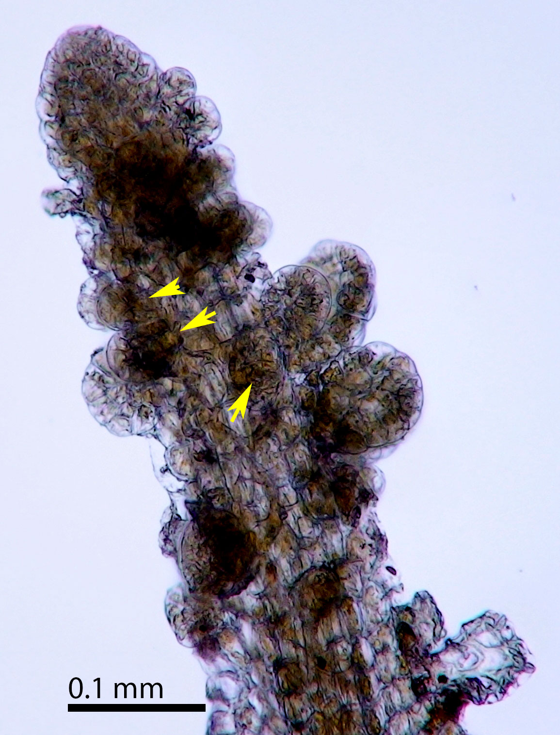 Slime papillae at the thallus apex, ventral side.