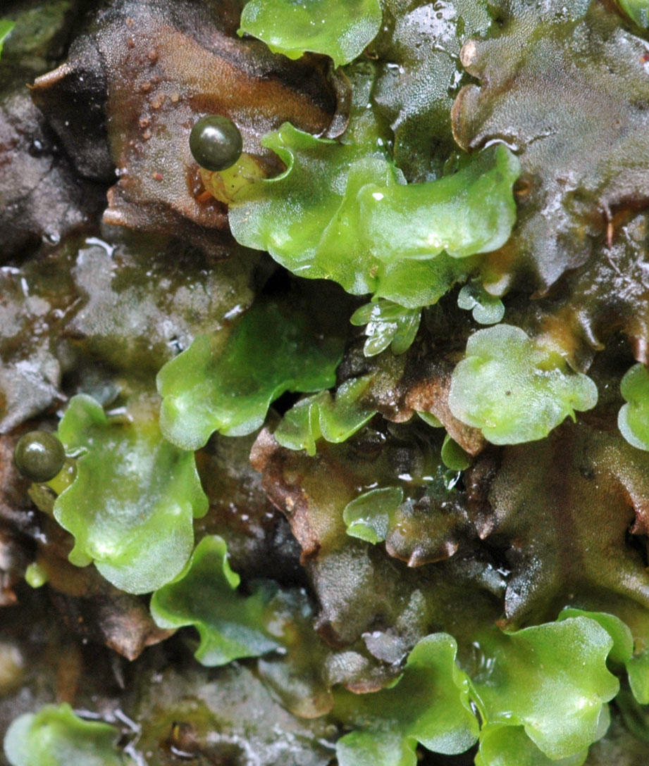 Superficially similar to small forms of Pellia, B. pusilla lacks oil bodies [ca. 15-35 oil bodies in cells of Pellia], is more regularly lobate along the thallus margins, produces dorsal, stellate gemmae, and a number of other distinctions making Blasia a very different plant.