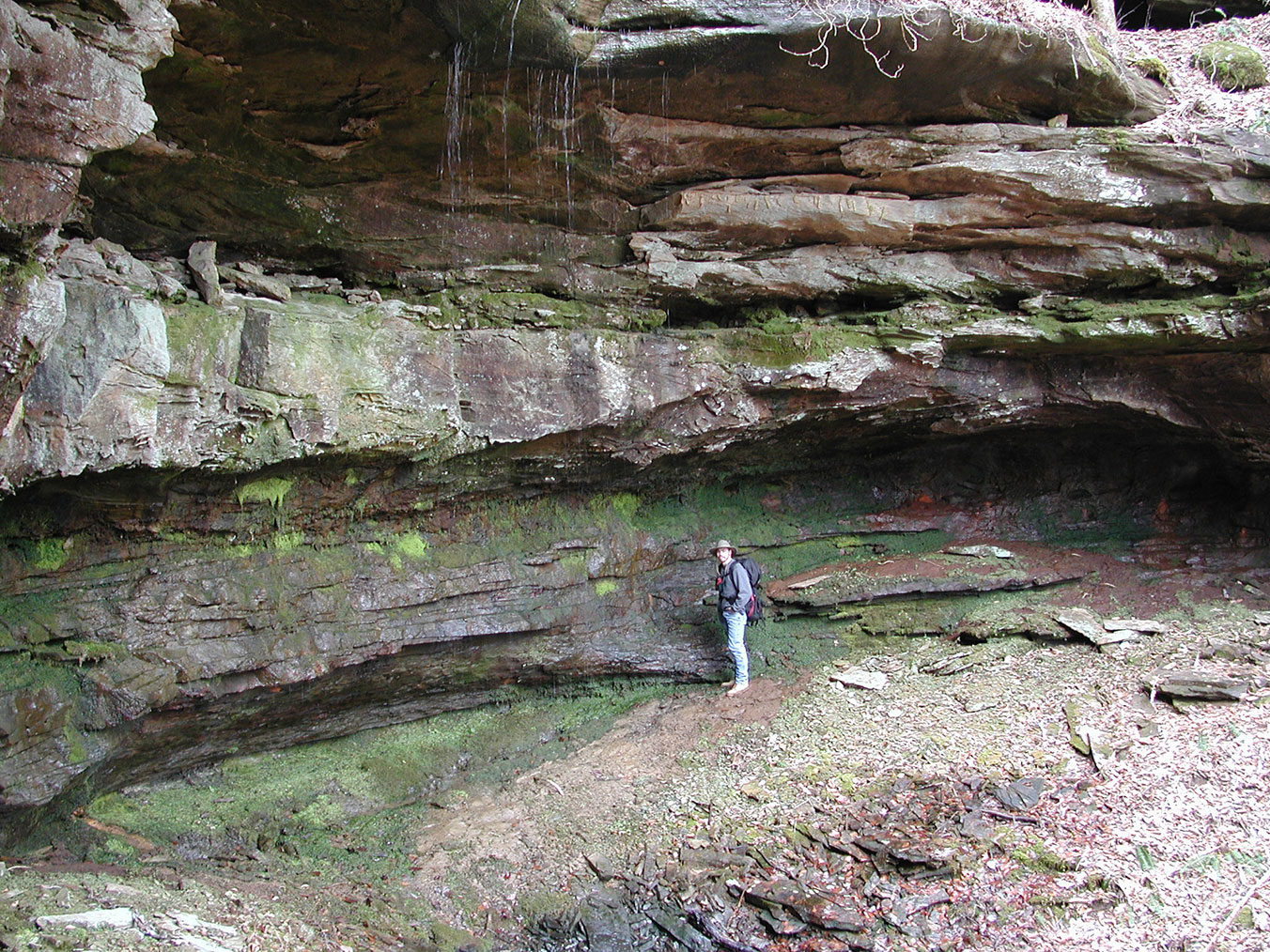 Occurring on the floor of this wet, sandstone rockhouse in Alabama, inevitably with P. epiphylla